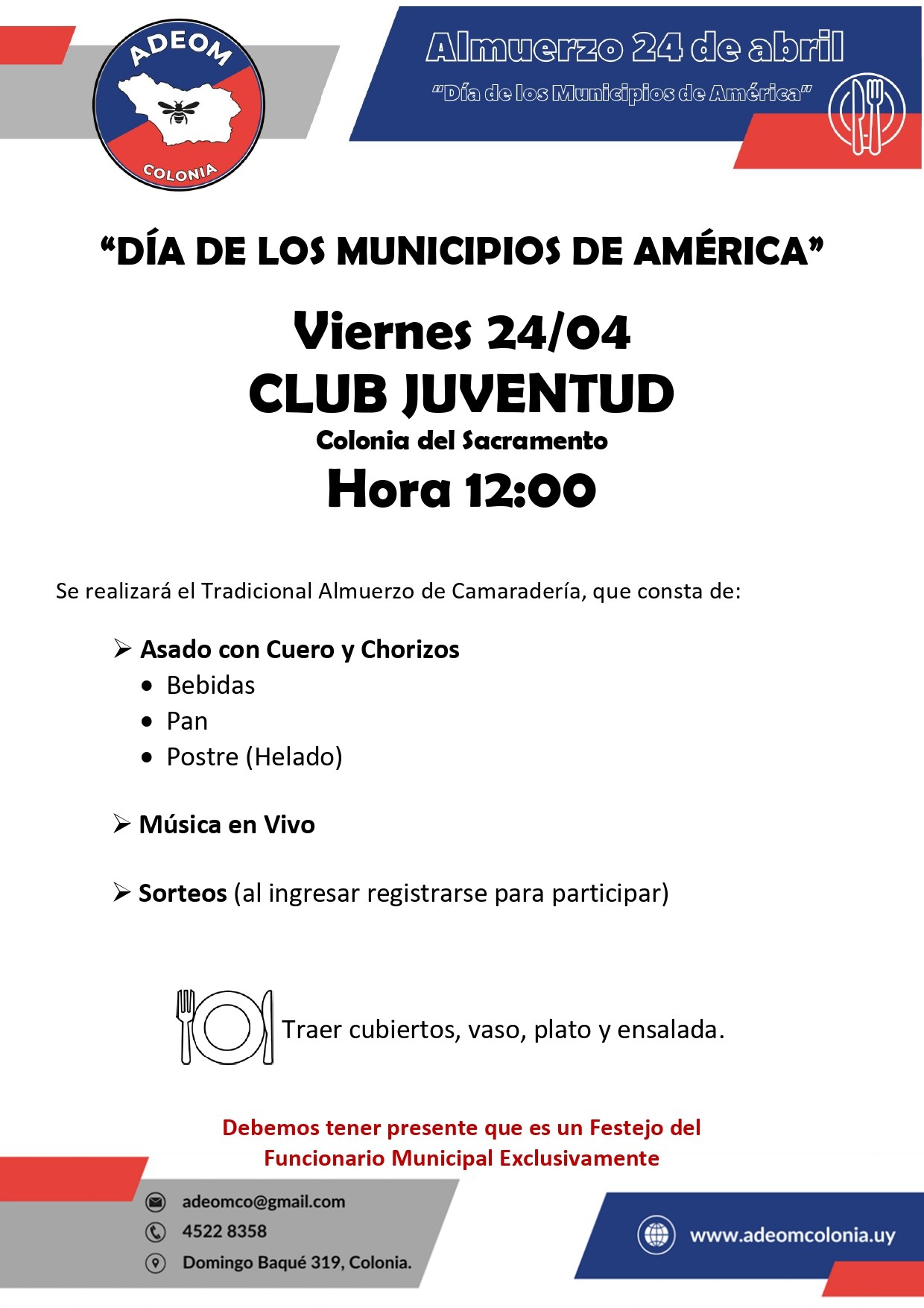 Día de los Municipios de América – Almuerzo de Camaradería – Viernes 24 de abril de 2026