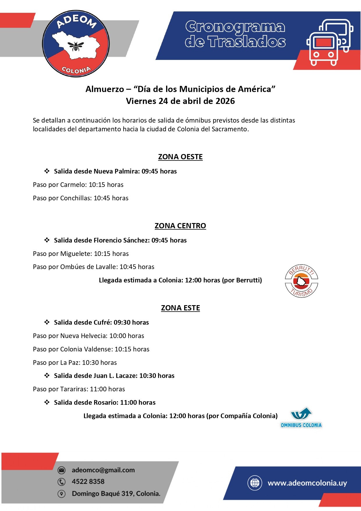 Llegada estimada a Colonia: 12:00 (por Compañía Colonia)
