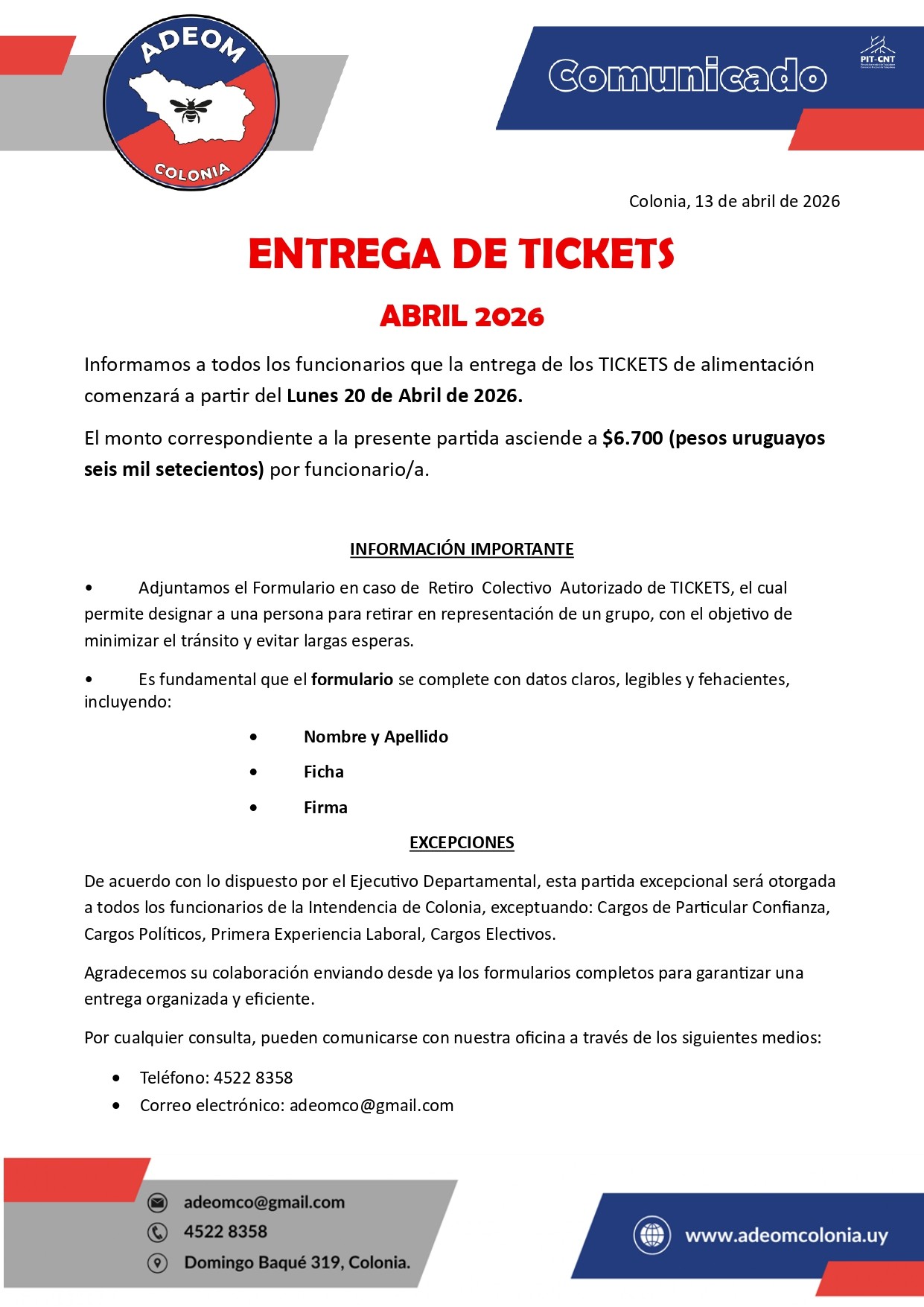 Descarga aquí formulario para entrega de tickets Abril-2026