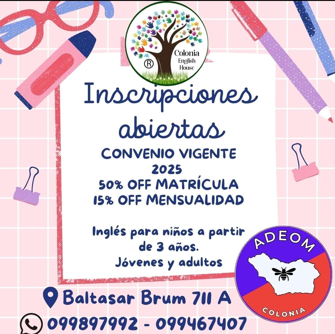 INSCRIPCIONES ABIERTAS EN COLONIA ENGLISH HOUSE